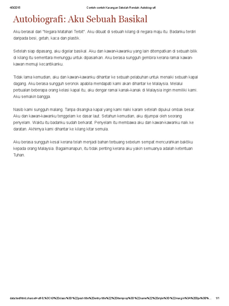 Contoh Contoh Karangan Sekolah Rendah Autobiografi Pdf
